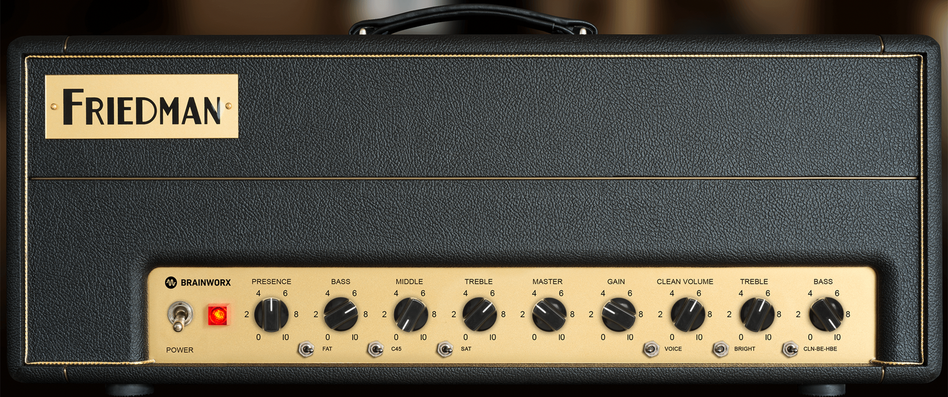 You’ll also find a Brainworx FX rack built into the Friedman BE-100 plugin. It features over 100 high-end recording chains, complete with Power Soak, noise gate, lo-fi delay, and filters. Additionally, interactive cabinet, room, mic, and preamp models allow you to fully customize your guitar sound.