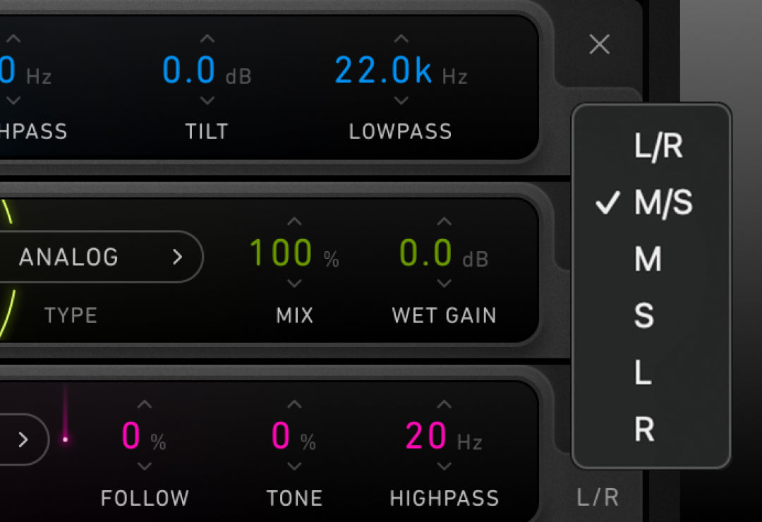 - Mid/side processing available in every module