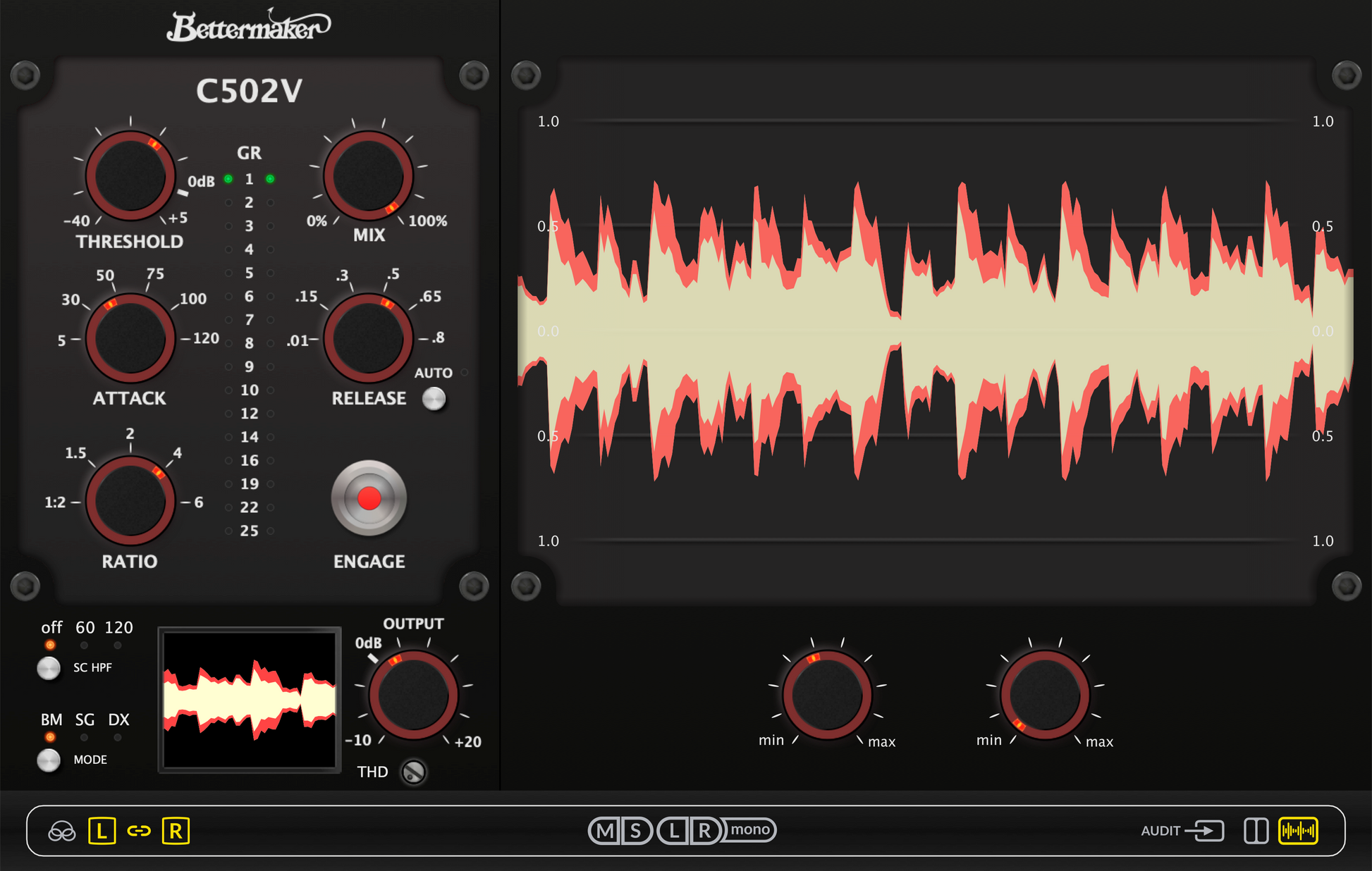 Bettermaker C502V features built-in waveform display provides real-time visual feedback, giving producers precise control over signal dynamics. This also makes the plugin more accessible to less experienced music makers who will also appreciate the wealth of presets for vocals, drums, bass, mixing, mastering, and more.