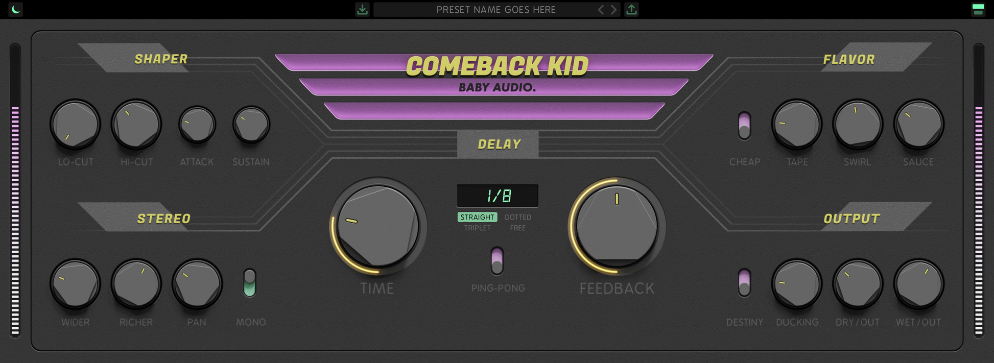 Comeback Kid gives you pristine sound quality along with the versatility to cover a variety of mix duties, from subtle reflections to hypnotic echoes. It might just become your new go-to delay!