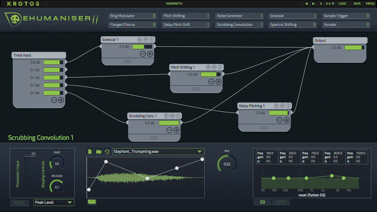 Use up to two instances of each node; use multiple pitch shifters, granular processors, spectral or convolution processes and more, in complex serial or parallel signal paths.