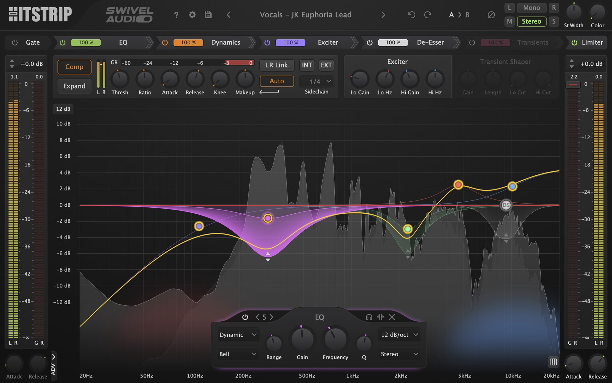 - 2-Band Exciter – Enhance your highs and lows with subtle harmonic coloration to make mixes more vibrant and energetic.