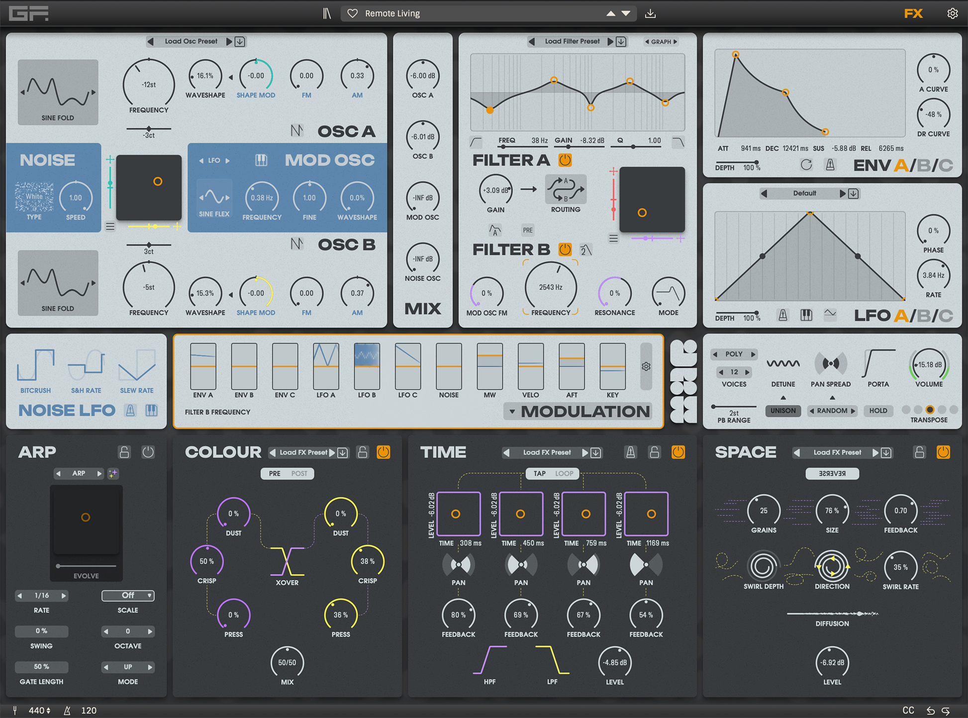 - Space: an ocean of grains and reverb for immersion and vastness.